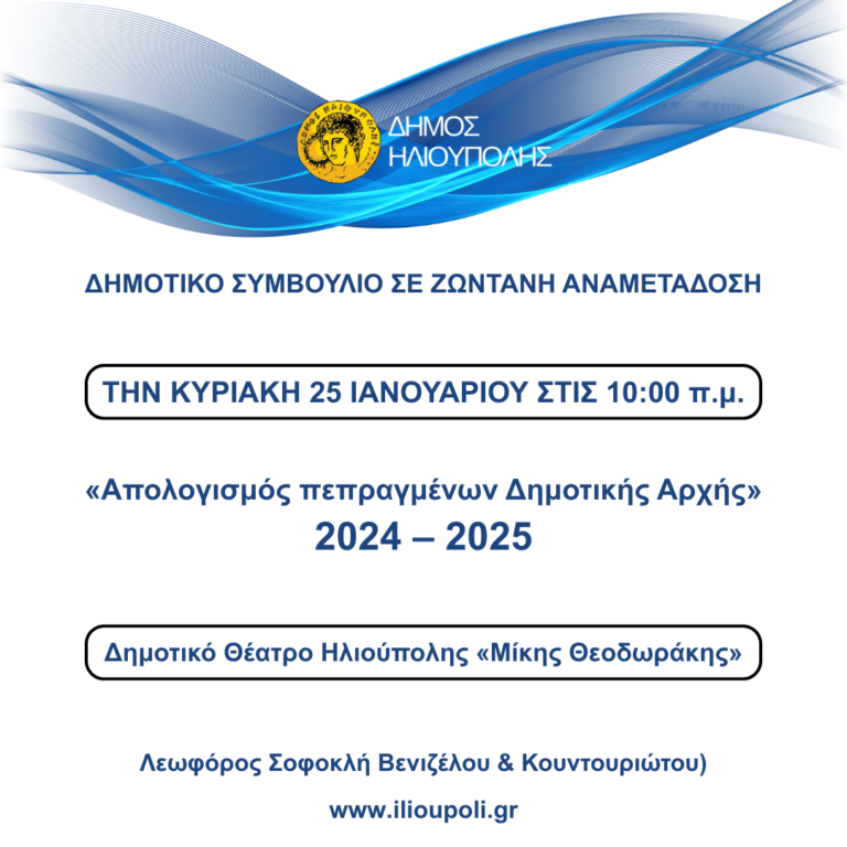 Tην Κυριακή 25 Ιανουαρίου 2026 στις 10:00 π.μ. το Δημοτικό Συμβούλιο για τον Απολογισμό Πεπραγμένων της Δημοτικής Αρχής 2024-2025