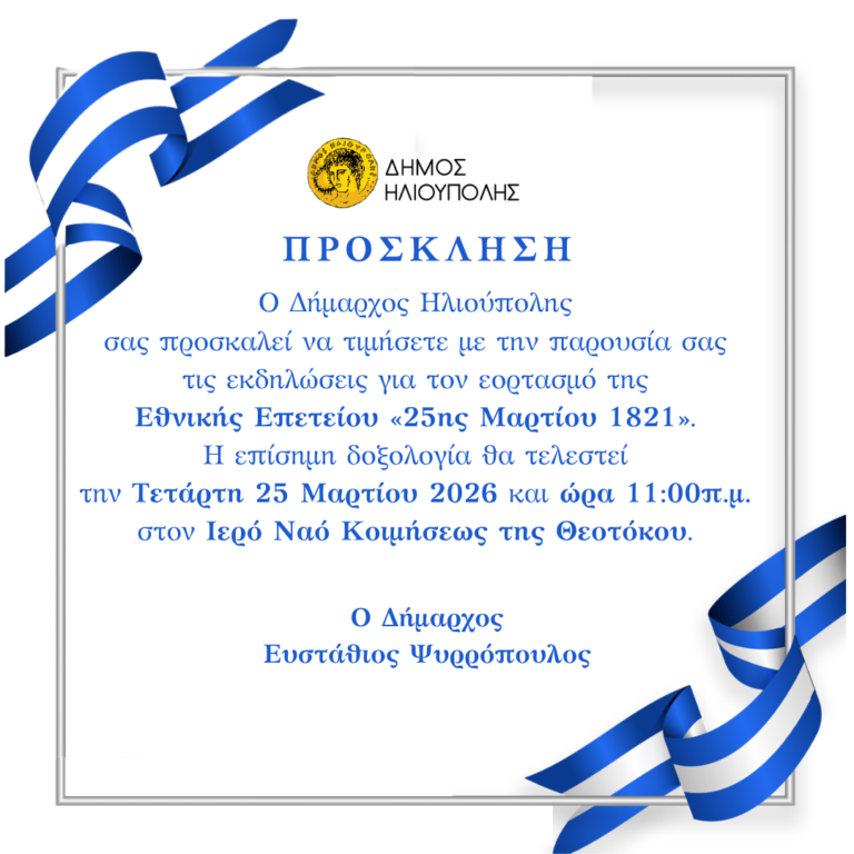Ο Δήμος Ηλιούπολης βρίσκεται στην ευχάριστη θέση να σας ενημερώσει ότι ο θεσμός του Δημοτικού Συμβουλίου Εφήβων επανέρχεται για 4η φορά την Τετάρτη 1η Απριλίου 2026 στις