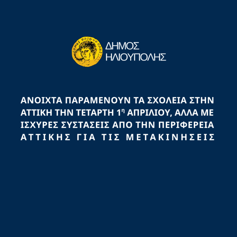 ΑΝΟΙΧΤΑ ΠΑΡΑΜΕΝΟΥΝ ΤΑ ΣΧΟΛΕΙΑ ΣΤΗΝ ΑΤΤΙΚΗ ΤΗΝ ΤΕΤΑΡΤΗ 1 η ΑΠΡΙΛΙΟΥ, ΑΛΛΑ ΜΕ ΙΣΧΥΡΕΣ ΣΥΣΤΑΣΕΙΣ ΑΠΟ ΤΗΝ ΠΕΡΙΦΕΡΕΙΑ ΑΤΤΙΚΗΣ ΓΙΑ ΤΙΣ ΜΕΤΑΚΙΝΗΣΕΙΣ