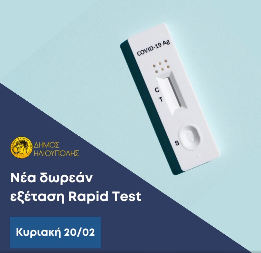 ΝΕΑ ΔΡΑΣΗ «COVID-19 RAPID TEST», ΤΗΝ ΚΥΡΙΑΚΗ 20 ΦΕΒΡΟΥΑΡΙΟΥ 2022, ΑΠΟ 09:30 ΕΩΣ 14:30