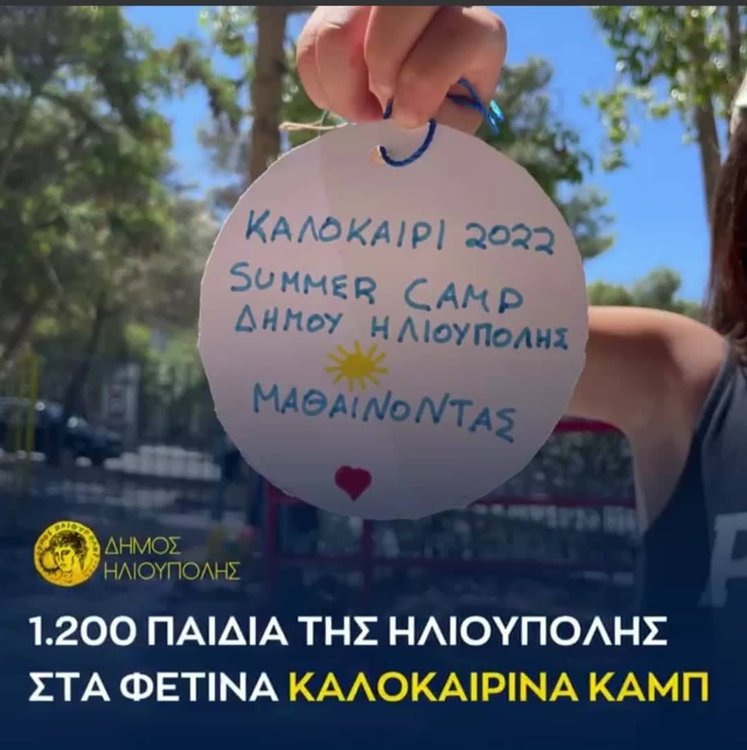Στο Α΄ Κλειστό Γυμναστήριο Ηλιούπολης, στο Δημοτικό Κολυμβητήριο, στο 8ο & 17ο Δημοτικό Σχολείο, στο 8ο και 21ο Νηπιαγωγείο και στο 2ο Γυμνάσιο, τα παιδιά της πόλης μας συμμετέχουν στα φετινά προγράμματα, που ξεκίνησαν στις 20 Ιουνίου και θα ολοκληρωθούν στις 29 Ιουλίου 2022.