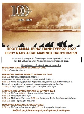 τῶν 100 χρόνων ἀπὸ τὴν Μικρασιατική καταστροφή τό 1922.