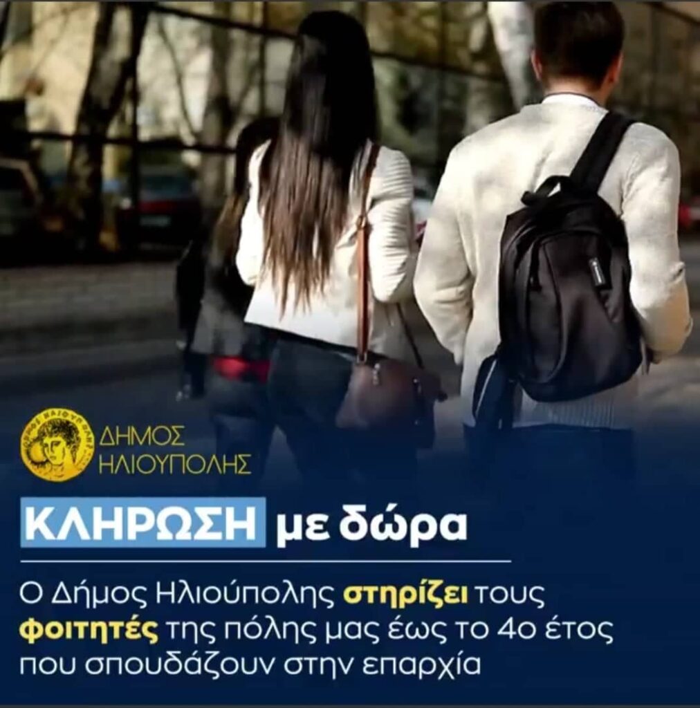 Ο Δήμος Ηλιούπολης στηρίζει τους φοιτητές της πόλης μας έως το 4ο έτος που σπουδάζουν στην επαρχία