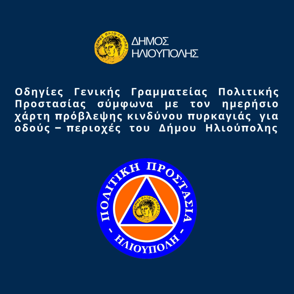 Οδηγίες Γενικής Γραμματείας Πολιτικής Προστασίας σύμφωνα με τον ημερήσιο χάρτη πρόβλεψης κινδύνου πυρκαγιάς για οδούς – περιοχές του Δήμου Ηλιούπολης