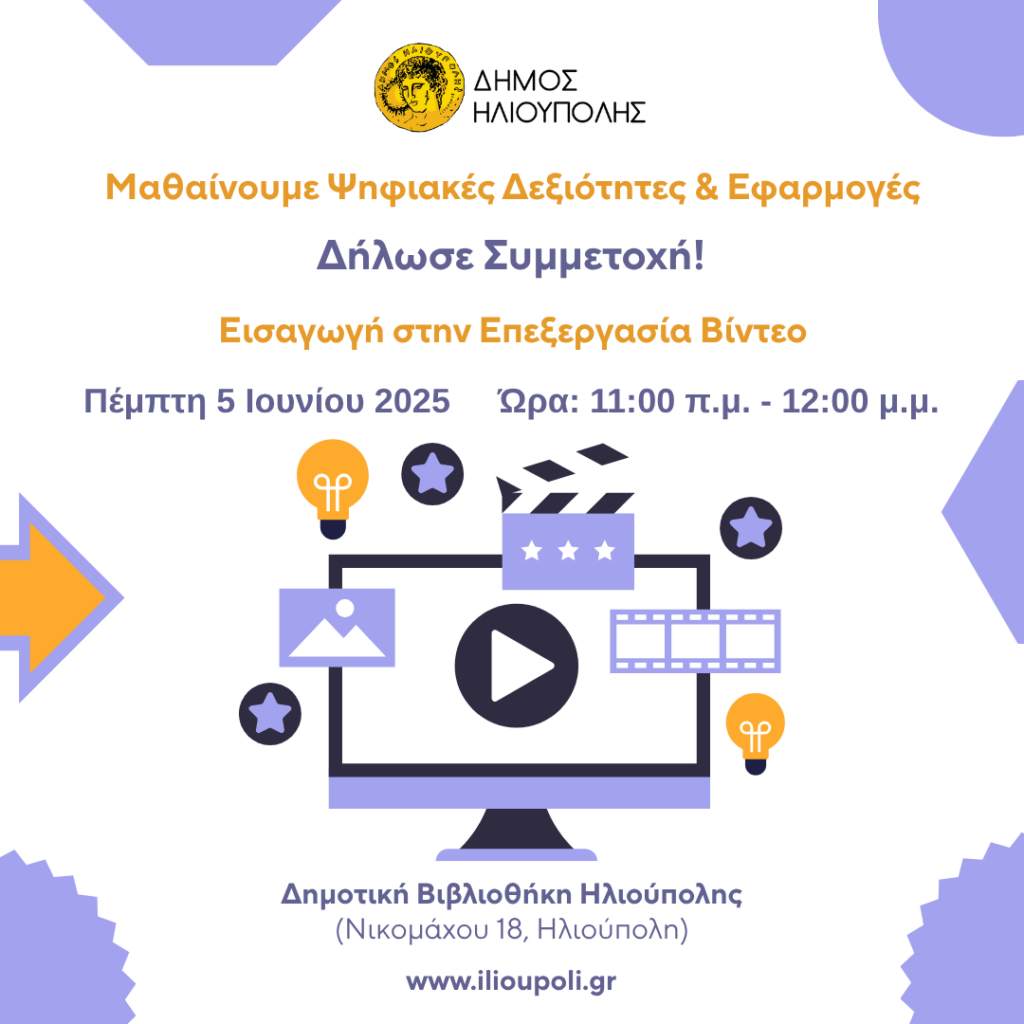 Στο Δήμο Ηλιούπολης «Μαθαίνουμε Ψηφιακές Δεξιότητες & Εφαρμογές» – Επεξεργασία Βίντεο
