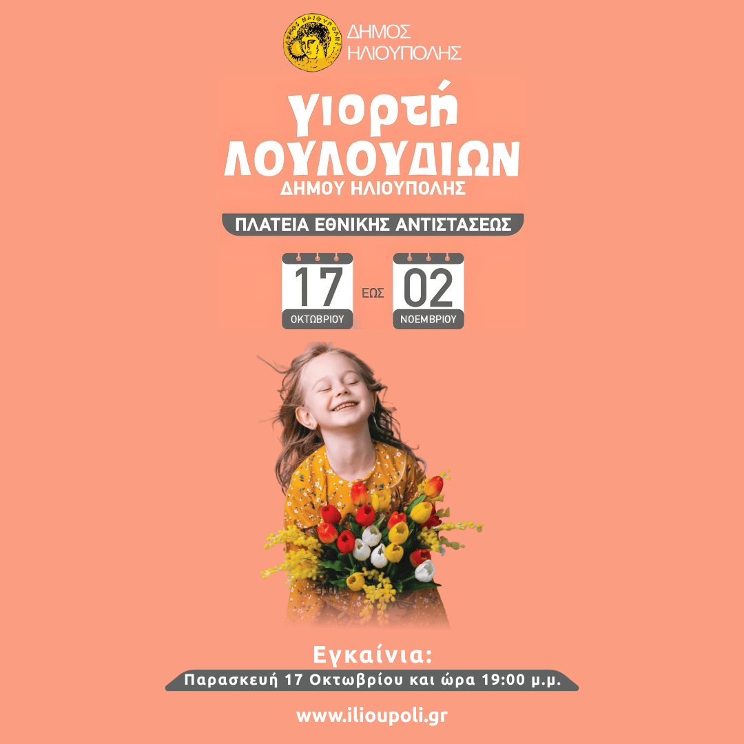 Η καθιερωμένη γιορτή των λουλουδιών που αγάπησαν οι Δημότες και οι κάτοικοι του Δήμου Ηλιούπολης αλλά και όσοι επισκέπτονται την πόλη μας, θα διαρκέσει από την Παρασκευή 17 Οκτωβρίου έως την Κυριακή 2 Νοεμβρίου 2025 και αποτελεί πλέον θεσμό για την Ηλιούπολη.
