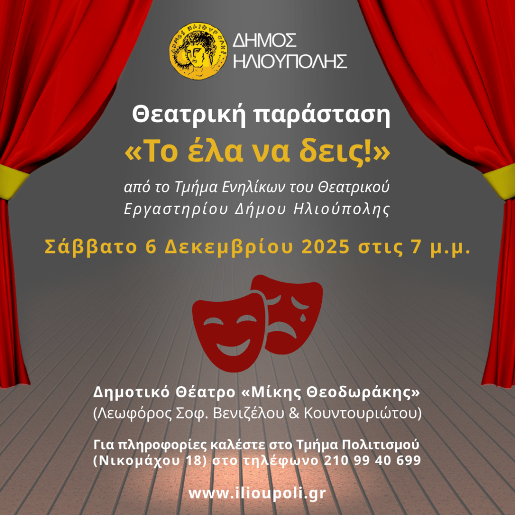 Θεατρική παράσταση «Το έλα να δεις!» από το Τμήμα Ενηλίκων του Θεατρικού Εργαστηρίου Δήμου Ηλιούπολης