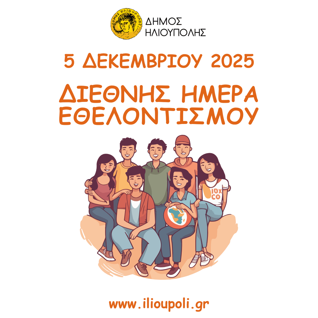 Ο Δήμος Ηλιούπολης εκφράζει ένα μεγάλο «ευχαριστώ» σε κάθε εθελόντρια και κάθε εθελοντή, σε κάθε σύλλογο και φορέα που προσφέρει χρόνο, γνώσεις, δημιουργικότητα και καρδιά.