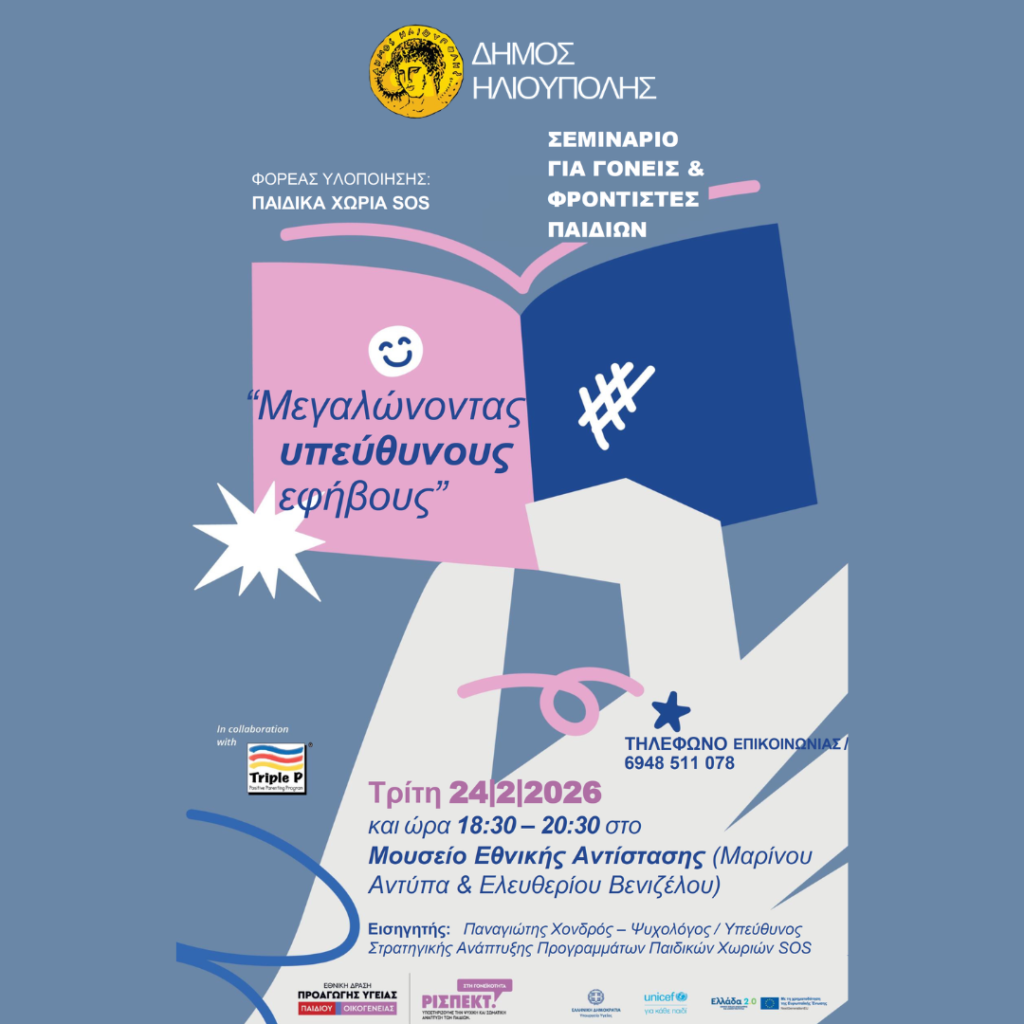 Τα Παιδικά Χωριά SOS Ελλάδας & ο Δήμος Ηλιούπολης στο πλαίσιο Μνημονίου Συνεργασίας που έχει συναφθεί, προωθούν στις 24 Φεβρουαρίου 2026 στο Μουσείο Εθνικής Αντίστασης 18:30-20:30 την Εθνική Δράση «Προαγωγή Υγείας Οικογένειας και Παιδιού», η οποία υλοποιείται από το Υπουργείο Υγείας σε συνεργασία με τη UNICEF και με χρηματοδότηση από το Ταμείο Ανάκαμψης και Ανθεκτικότητας, εφαρμόζουν […]