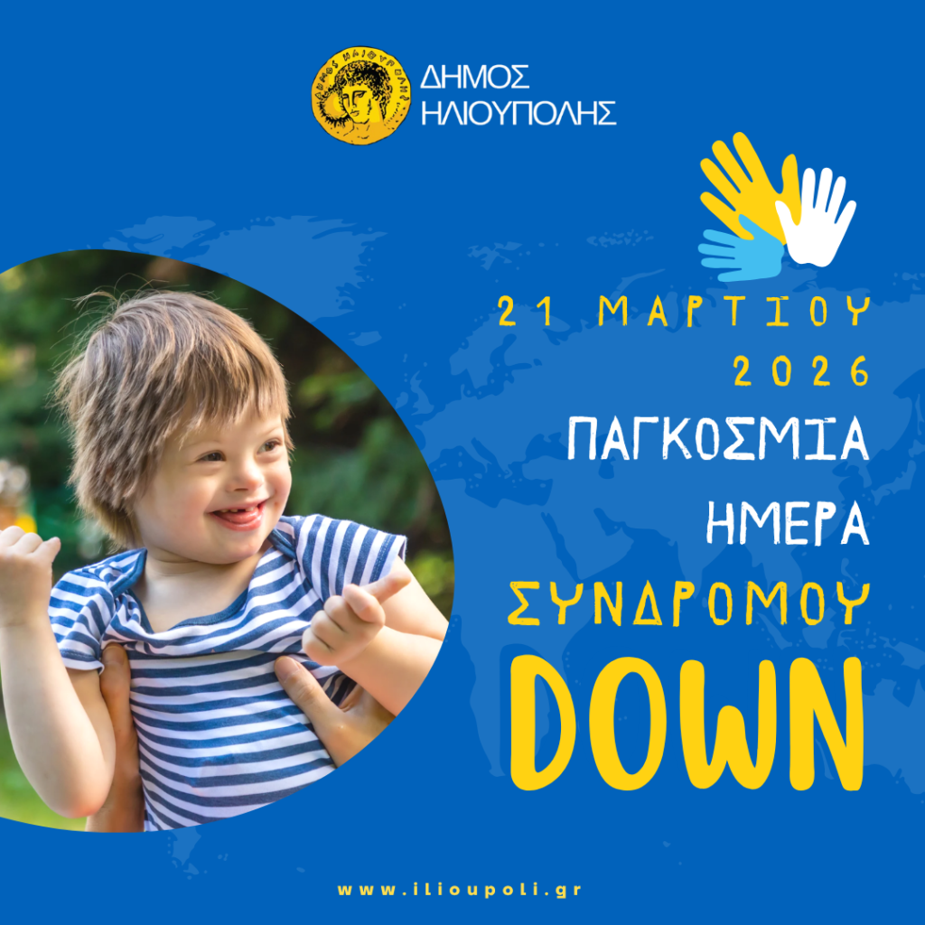 Με αφορμή την Παγκόσμια Ημέρα Συνδρόμου Down, σήμερα Σάββατο 21 Μαρτίου 2026, ο Δήμος Ηλιούπολης ενώνει τη φωνή του με τη διεθνή κοινότητα, αναδεικνύοντας το φετινό μήνυμα: «Μαζί ενάντια στη μοναξιά». Το θέμα της φετινής ημέρας υπενθυμίζει με έμφαση ότι η ουσιαστική ένταξη των ατόμων με σύνδρομο Down απαιτεί τη δημιουργία βαθιών, αυθεντικών και […]