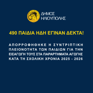 490 παιδιά ήδη έγιναν δεκτά! Ο Δήμος Ηλιούπολης βρίσκεται στην ευχάριστη θέση να σας ανακοινώσει ότι απορροφήθηκε η συντριπτική πλειονότητα των παιδιών για την