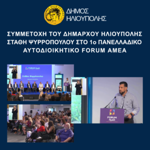 Ο Δήμαρχος Ηλιούπολης Στάθης Ψυρρόπουλοςσυμμετείχε στο 1ο Πανελλαδικό FORUM ΑμεΑτου Δήμου Ελληνικού–Αργυρούπολης στις 1 και 2 Οκτωβρίου, όπου είχε την ευκαιρία να εκθέσει την πολιτική