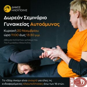 Δωρεάν Σεμινάριο Γυναικείας Αυτοάμυνας Κυριακή 20 Νοεμβρίου ώρα 11:00 έως 13:30 μ.μ.