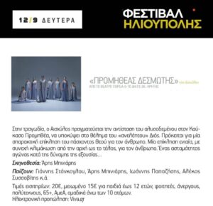 «ΠΡΟΜΗΘΕΑΣ ΔΕΣΜΩΤΗΣ» του Αισχύλου ΑΠΟ ΤΟ ΘΕΑΤΡΟ ΠΟΡΕΙΑ & ΤΟ ΔΗ.ΠΕ.ΘΕ. ΚΡΗΤΗΣ
