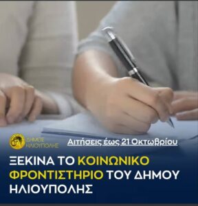 Ξεκινά το κοινωνικό φροντιστήριο του Δήμου Ηλιούπολης αιτήσεις εως 21 Οκτωβρίου