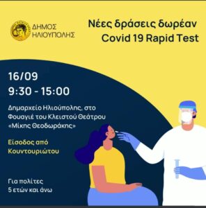 Νέες δράσεις δωρεάν Covid 19 rapid test για τον μήνα Σεπτέμβριο 2022