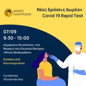 Νεες δράσεις δωρεάν Covid-19 Rapid Test στο Δημαρχείο Ηλιούπολης για τον μήνα Σεπτέμβριο 2022