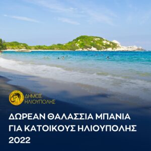 Ο Δήμος Ηλιούπολης στα πλαίσια της κοινωνικής πολιτικής του, διοργανώνει και φέτος το καλοκαίρι δωρεάν θαλάσσια μπάνια, για τους κατοίκους της πόλης μας. Για την