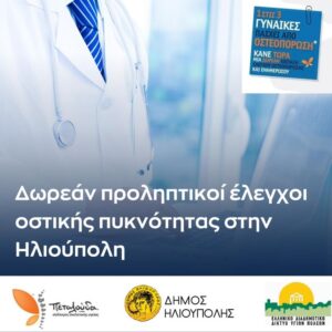 ΔΩΡΕΑΝ ΠΡΟΛΗΠΤΙΚΟΙ ΕΛΕΓΧΟΙ ΟΣΤΙΚΗΣ ΠΥΚΝΟΤΗΤΑΣ ΣΤΗΝ ΗΛΙΟΥΠΟΛΗ