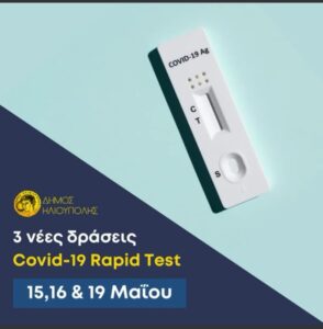 3 ΝΕΕΣ ΔΡΑΣΕΙΣ COVID-19 RAPID TEST 15,16 &19 ΜΑΙΟΥ