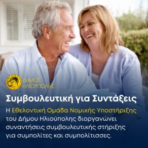 Η Εθελοντική Ομάδα Νομικής Υποστήριξης του Δήμου Ηλιούπολης διοργανώνει συναντήσεις συμβουλευτικής στήριξης για συμπολίτες και συμπολίτισσες, το Σάββατο 19 Μαρτίου 2022, από 12:00 έως 15:00,