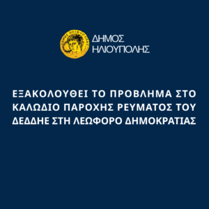 Ενημερώνουμε τους Δημότες & Κατοίκους Ηλιούπολης ότι το πρόβλημα έλλειψης Δημοτικού Φωτισμού στη Λεωφόρο Δημοκρατίας του ΔΕΔΔΗΕ παραμένει παρά τις συνεχείς πιέσεις του Δήμου Ηλιούπολης