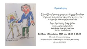 Την Παρασκευή 03/10/25 εγκαινιάσθηκε στο Μουσείο Εθνικής Αντίστασης Ηλιούπολης, η ‘Έκθεση ζωγραφικής εικαστικών καλλιτεχνών με τίτλο τίτλο «….με αφορμή τον Γιώργο Μπουζιάνη» στο πλαίσιο των δράσεων του Μουσείου